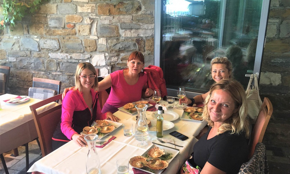 Don’t worry, after the hike, we won't leave you thirsty nor hungry. You'll receive one complimentary water (0,5l) and we'll stop in Gostišče Pirat for an fish pate called Bakala and shellfish called Kapesante in a company with a glass of exquisite Slovenian Wine. We'll listen to and possibly dance to Istrian music.